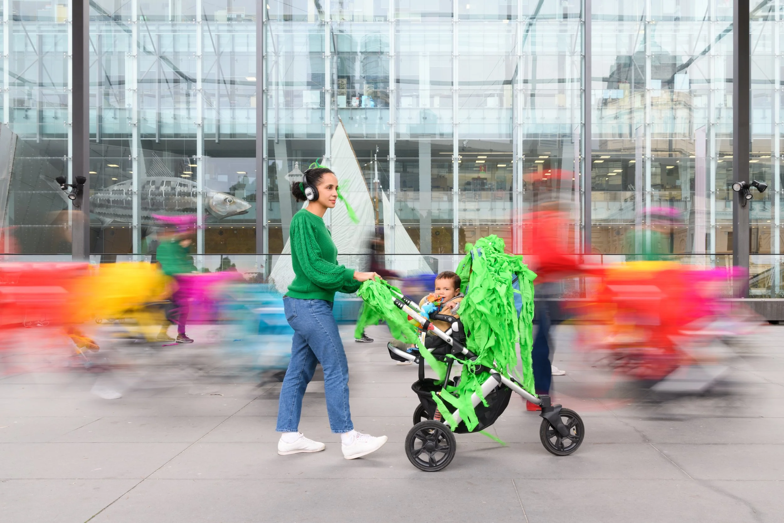 Katerina and I have a development at a gallery in Collingwood, in a tiny room on Hoddle Street. We are working on a sound work. This is made difficult, firstly by the traffic, then by the roar of an extractor fan behind the wall, then by the slaps, groans and wails from the kink workshop going on next door. I get a migraine. I lie on the floor, quiet in the midst of a tornado of noise. The next day, we cannot access the gallery for hours, because there is a man dead on the road outside. The way that the existential clashes with the practical. It is horrible, yes, but we are also waiting for the police to let us in so we can work.