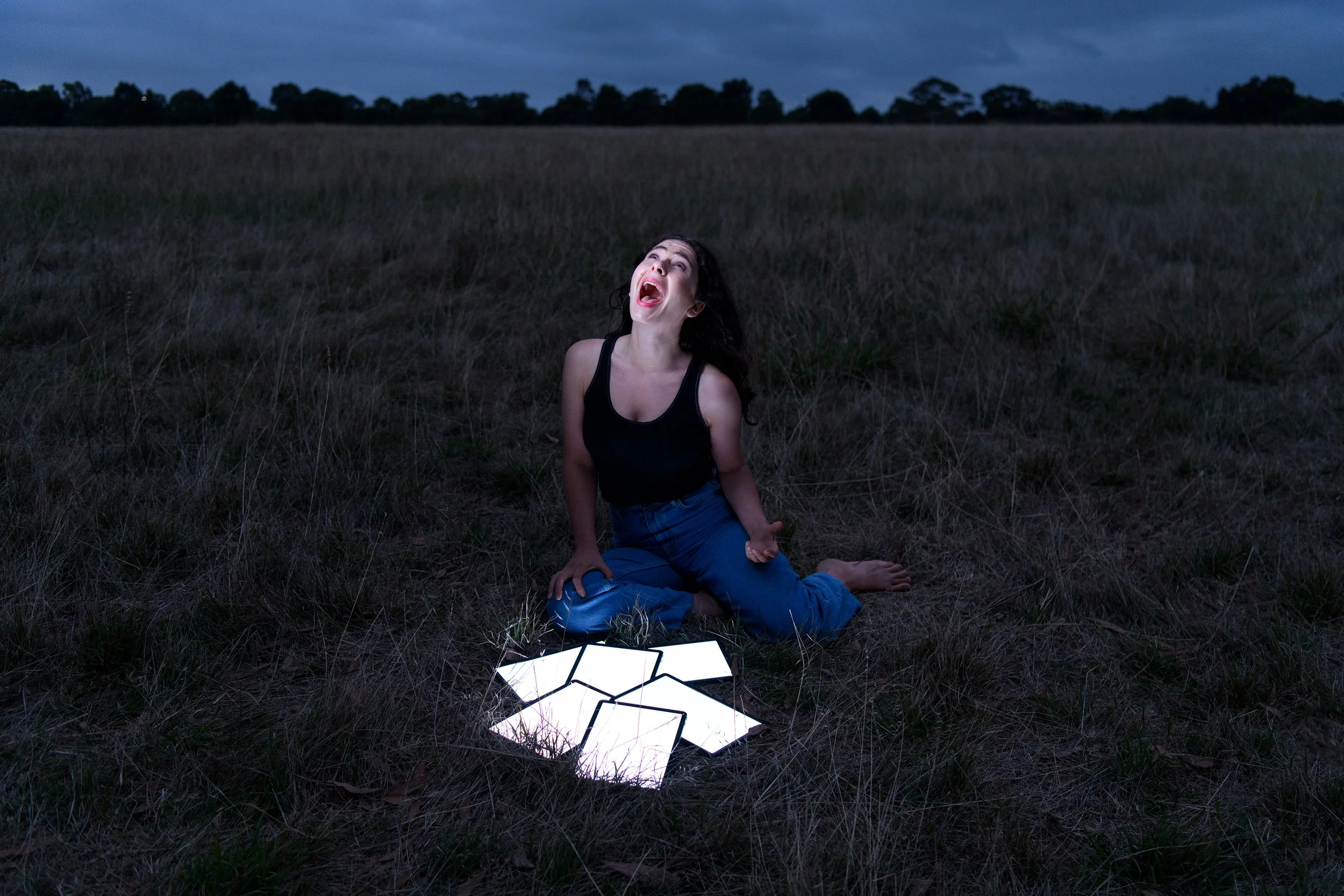 I go to the showing of David’s new theatre work. It’s about the climate crisis, the bushfires, the history of humans learning the wrong thing from disaster. It ends with a terrible, unstoppable list of all the ways we’re fucking the planet. I excuse myself and rush to the toilet to sob quietly. I recognise the shoes in the next cubicle over.