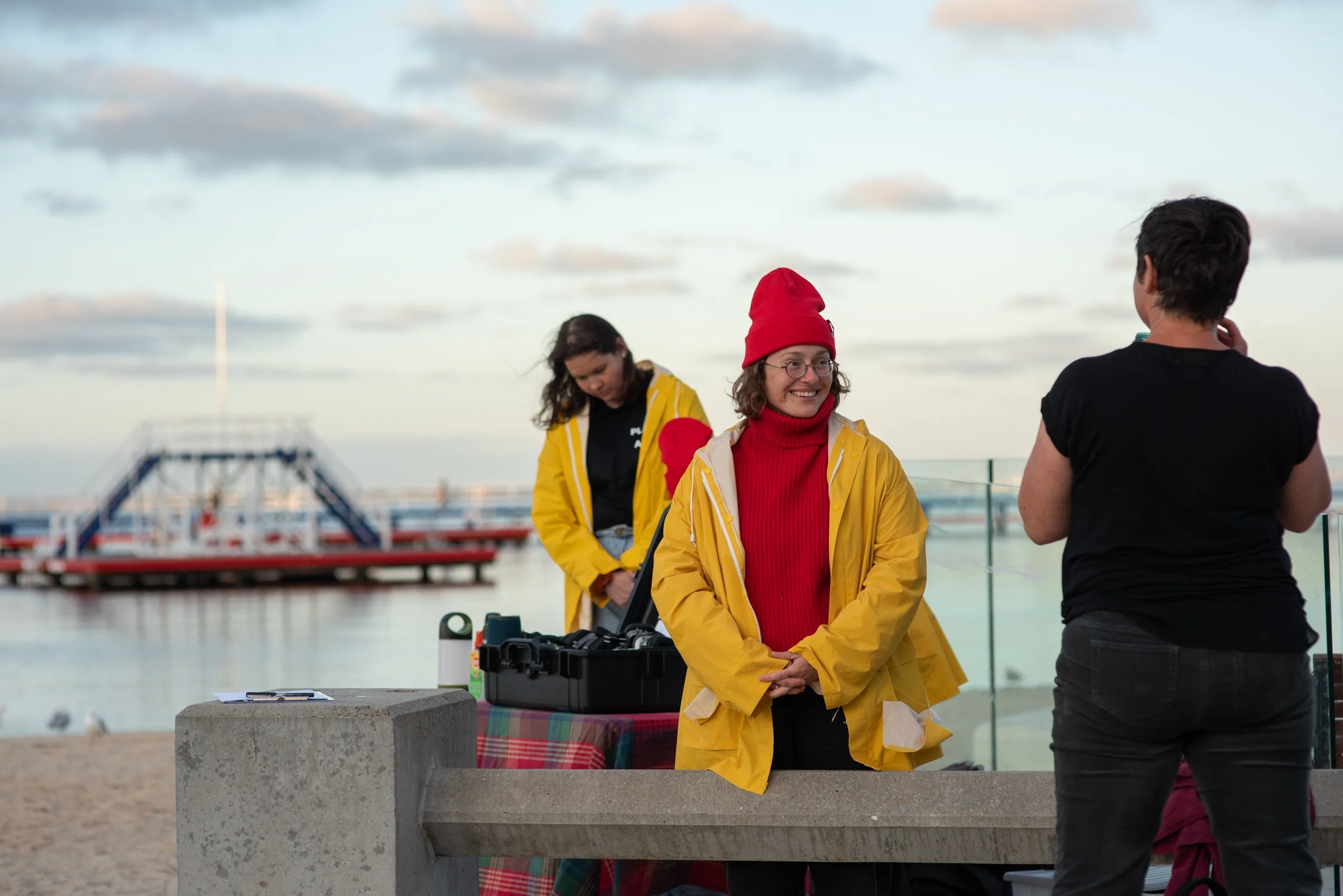 We do a development showing of Bodies of Water, the audio work that Katerina and I are making at Eastern Beach. The theatre of the sun going down over the ocean never fails to be staggering. Rachel, over tea, describes it: ‘We were being chased by the dark.’