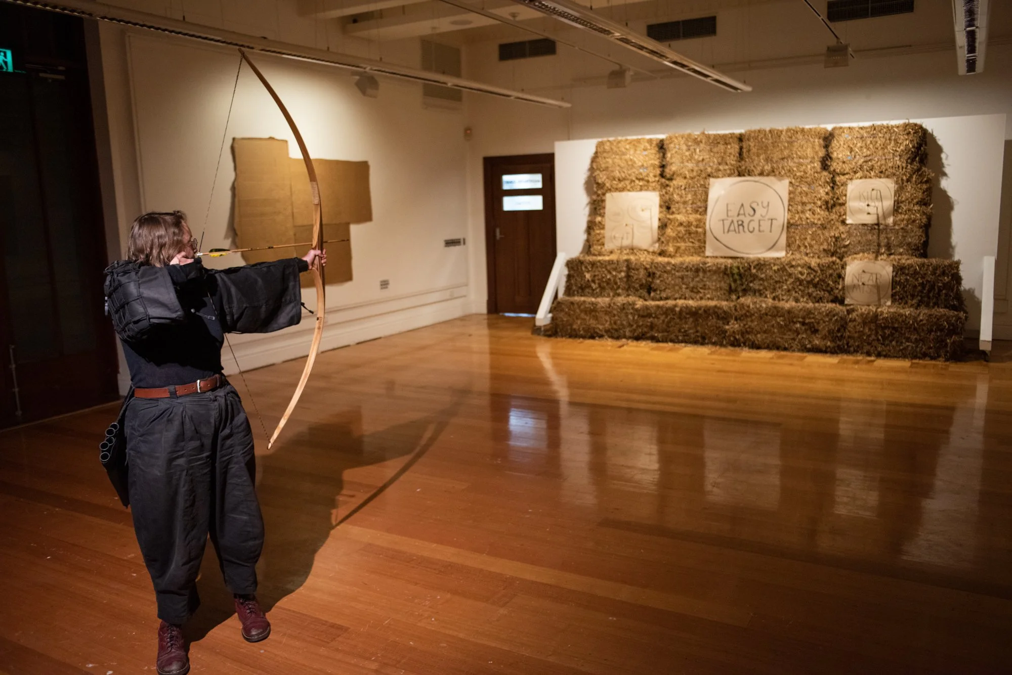 Sarah Jones suggests a giant wall of hay bales as a shooting gallery for my solo show in Geelong.