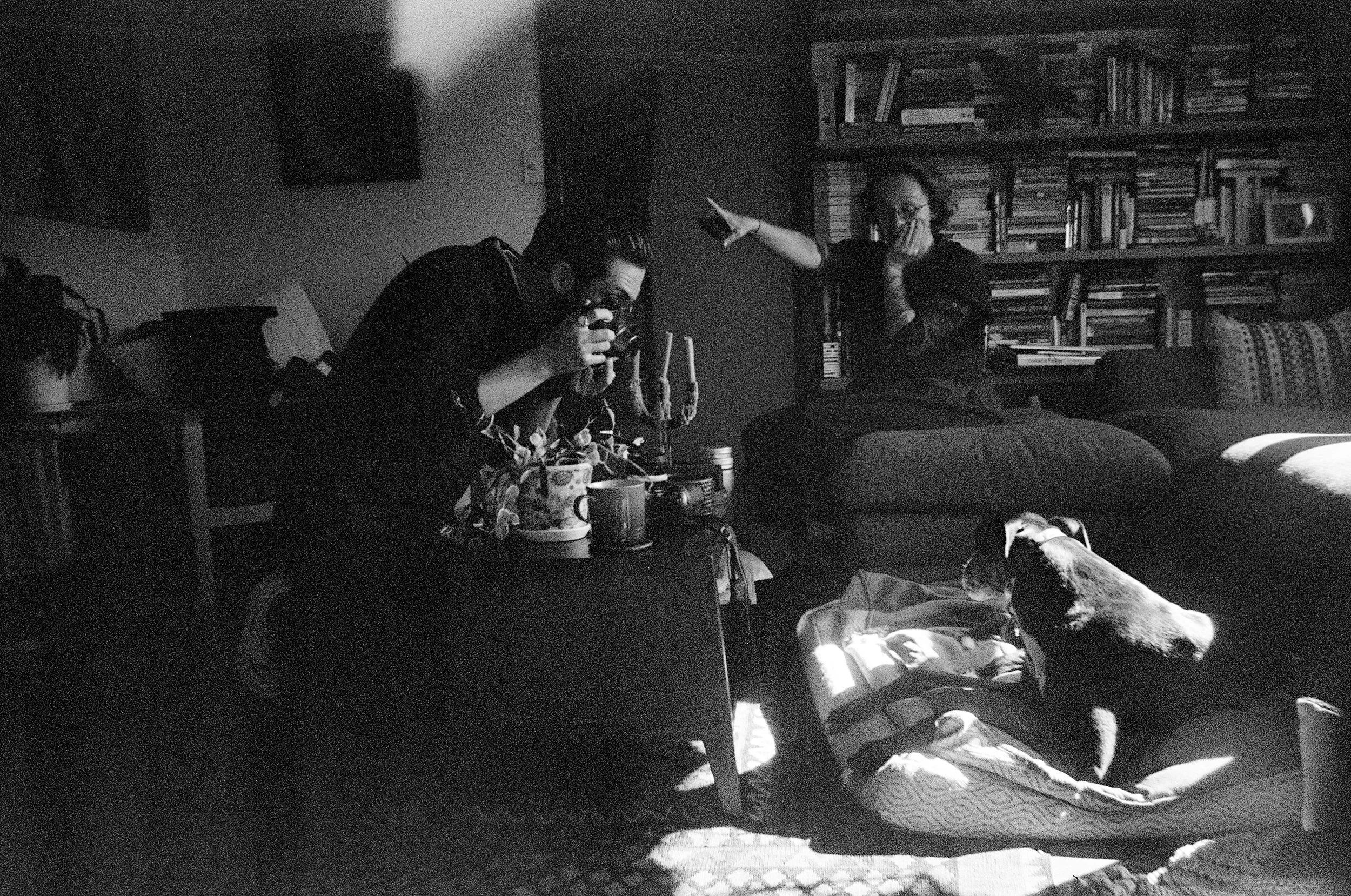 I record dad for a video work. He hams up his part, improvising lines, coming up with jokes. We burst out laughing at each other. The generosity of it.