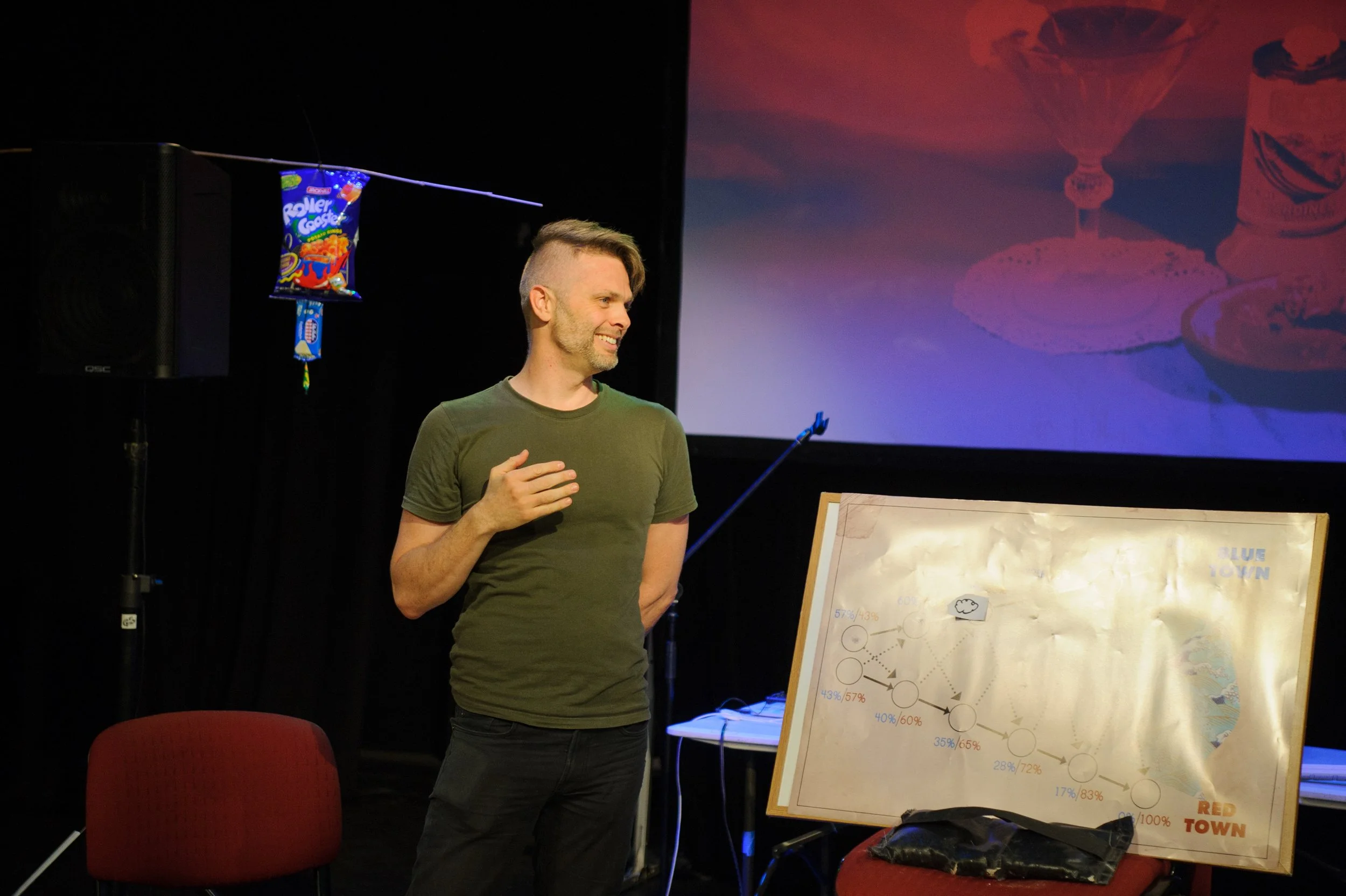 At the Fringe, we watch Pony Cam’s Burnout Paradise. I’ve never seen a show get the audience so quickly onside and passionately involved in participation in my life. It is a masterclass in a simple idea well executed. Chaotic joy.