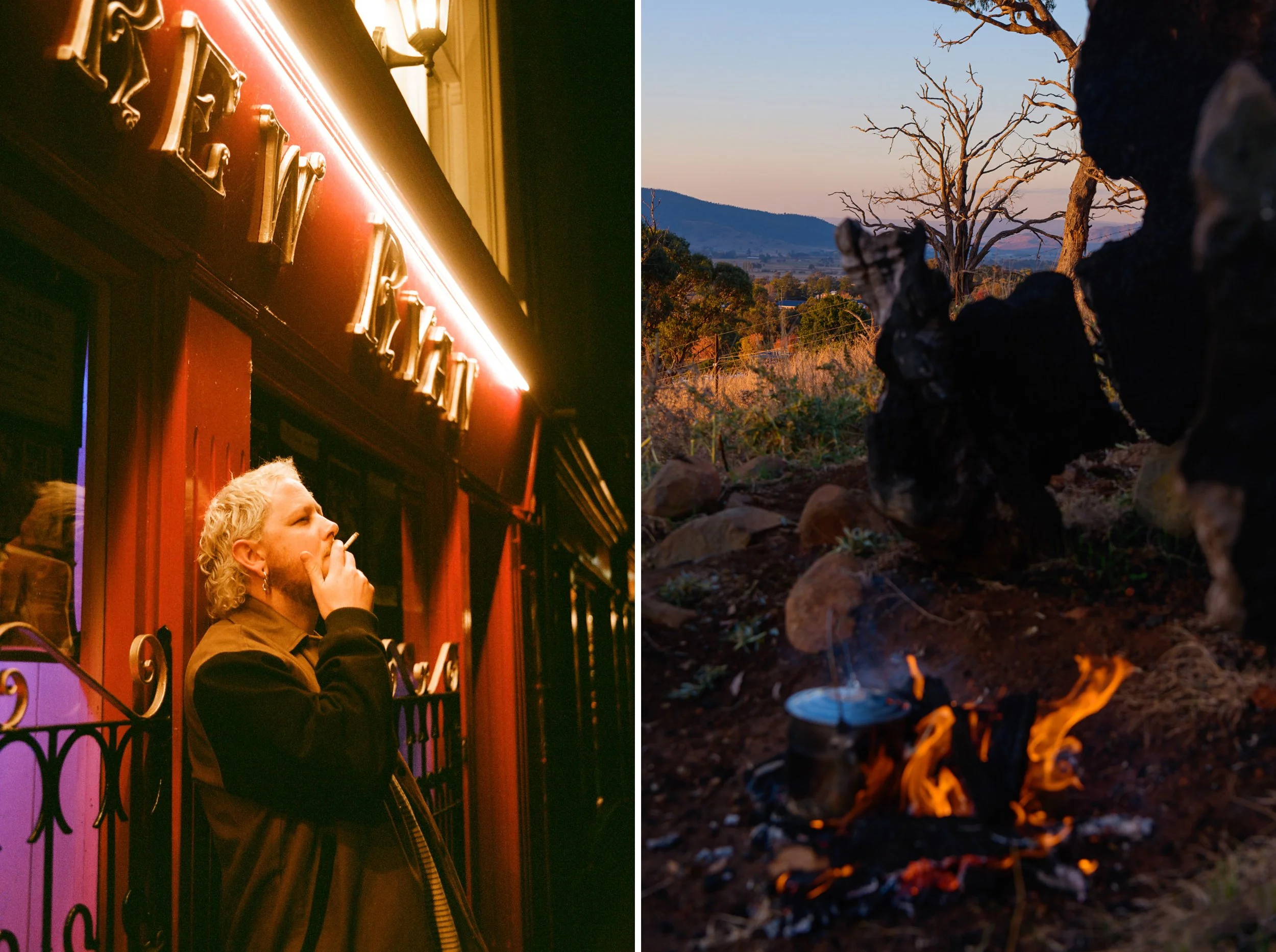 We drive to Adelaide to stay with Mikey and Sarah. Mike swims at Aldinga Beach and emerges from the water covered in angry red weals like spears on his shoulders; the result of a bluebottle sting. We spend a drunken night at Nick and Stella’s, belting out torch songs. ‘The thing about a fire,’ Nick says, ‘is that it’s always dying.’
