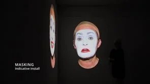 Masking deals with the unsustainable nature of anxiety. The work features two large, synced projections, each featuring the artist, made up in the manner of a theatrical clown. As the lights come up, I adopt the extreme expressions of the comedy and tragedy masks, which I attempt to maintain over a 30 minute duration. Across this time, my face begins to sag, twitch and drool with the effort of sustaining the emotional affect. Eventually, the two expressions begin to resemble each other, as shaky, gurning attempts at staying within the prescribed emotional states.